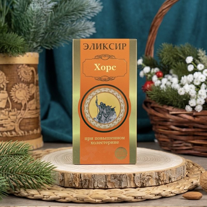 Эликсир на фруктозе Хорс при повышенном холестерине, 250 мл. Алтайский растительный бальзам для профилактики атеросклероза. Эликсир Хорс содержит уникальный состав трав, способствующих естественному снижению уровня холестерина в крови и профилактике развития атеросклероза. Эликсир Хорс При повышенном холестерине благоприятно влияет на деятельность сердечно-сосудистой системы, очищает сосуды.