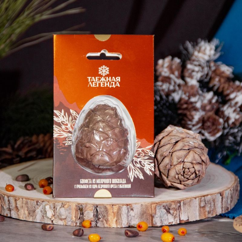 Предлагаем Вам грильяж, изготовленный из цельного ядра кедрового ореха и нежной карамели, который удовлетворит любой, самый изысканный вкус! Итальянский молочный шоколад и нежный аромат лесных ягод создают неповторимый букет удивительных конфет «Таежная Легенда»!