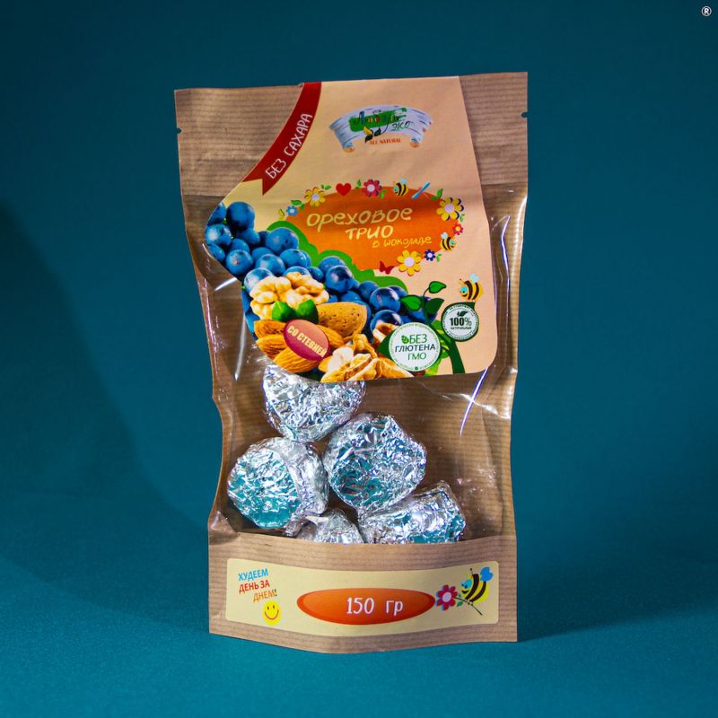 Конфеты фруктово-ореховые без сахара 150 гр — Ореховое трио в шоколаде 150 г