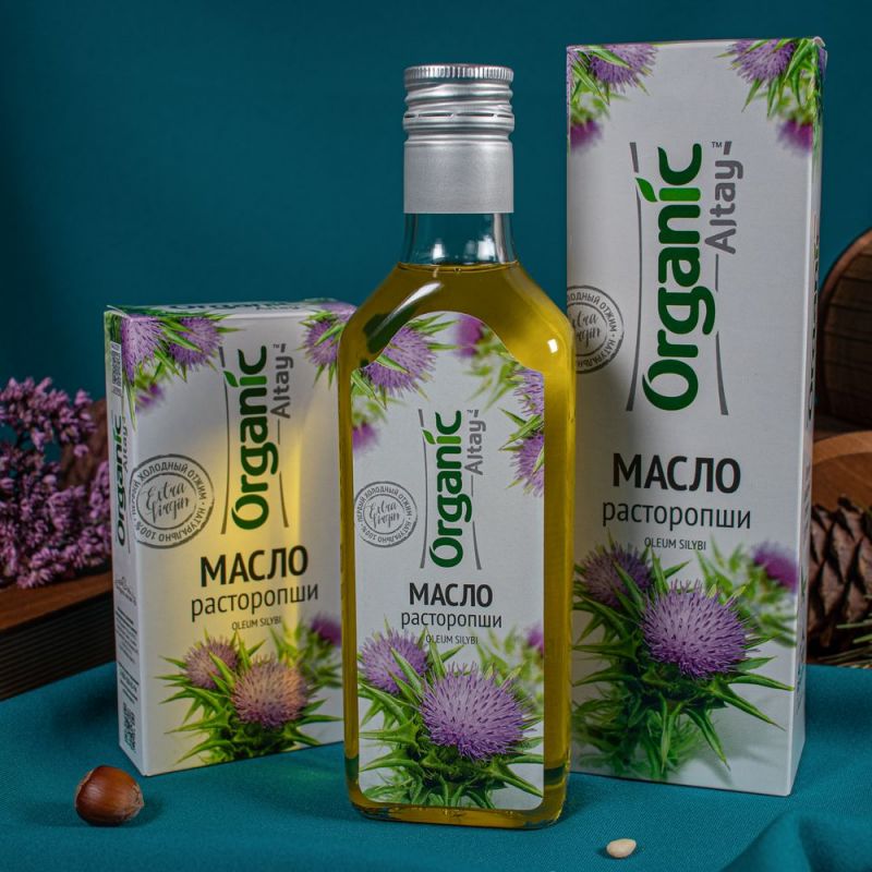 Во многих старинных легендах расторопша имеет второе, весьма необычное, название – «подарок Девы Марии». Считается, что о лечебных свойствах этого растения людям поведала сама Богородица. С той поры расторопшей успешно врачевали многие недуги. А в наше время свойства и состав растения исследуют с привлечением достижений науки. Так, благодаря трудам ученых из мюнхенского Института фармацевтики, в 1968 году выяснилось, что в основе всех целительных свойств расторопши лежит активное вещество силимарин. Это комплекс флавоноидов, способный оказывать на организм антиокислительное действие, снимает воспалительные процессы. Кроме того, это природное гепатопротекторное средство. Оно «перехватывает» и обезвреживает токсические и ядовитые вещества ещё до того, как они негативно повлияют на состояние печени и желчевыводящих путей. Еще одна особенность силимарина в том, что он восстанавливает мембраны клеток печени. Причем, на сегодня это единственное в своем роде природное средство. Масло расторопши производится из семян расторопши. Выращенное на экологически чистых сибирских полях, семя проходит тщательный отбор. При переработке компания «Специалист» использует самый щадящий из всех возможных методов получения масла – метод холодного отжима. Он сохраняет всю пользу расторопши, заложенную в нее природой. Обладает ярко выраженным желчегонным свойством; Улучшает детоксикационные функции печени; Нормализует происходящие в печени обменные процессы; Как следствие – происходит улучшение пищеварения в целом, усиливает способность организма противостоять негативным воздействиям окружающей среды.