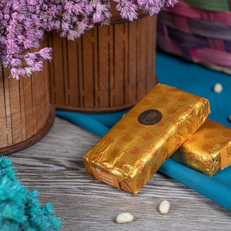 Шоколадный марципан с кедровыми орешками, покрытый глазурью. Любимые конфеты обрели новый вкус, стали еще вкуснее благодаря насыщенному вкусу какао бобов и обжаренным кедровым орешкам. Шоколадный марципан имеет вид слитка, что делает его еще более привлекательным. Мягкая конфета, состоящая из тертого ядра кедрового ореха и цельного сухого молока в нежной шоколадной глазури. Пикантный вкус и яркое послевкусие удивят даже бывалых ценителей сладостей.