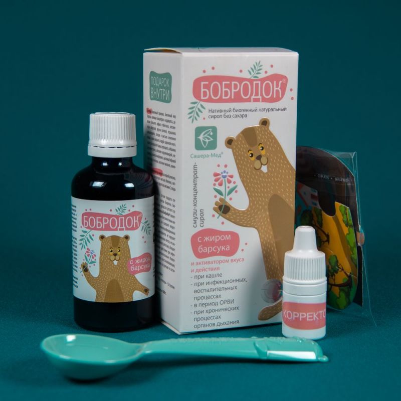 Бобродок — С жиром барсука сироп ПРИ ОРВИ и КАШЛЕ 50 мл