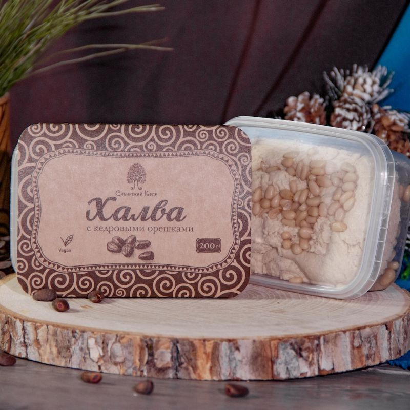Халва «Кедровая» - это натуральный продукт ручного вымешивания, с добавлением цельного ядра кедрового ореха, без красителей и ароматизаторов.