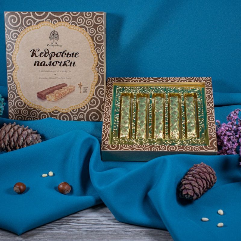 Конфеты "Кедровые палочки" приготовлены из цельных ядер кедрового ореха с добавлением натуральной карамели, сверху десерт покрыт тонким слоем шоколадной глазури. Изысканное лакомство имеет полностью натуральный состав без ароматизаторов и добавок, усиливающих вкус. Хрустящие палочки понравятся не только любителям сладкого, но и ценителям экологически чистых продуктов