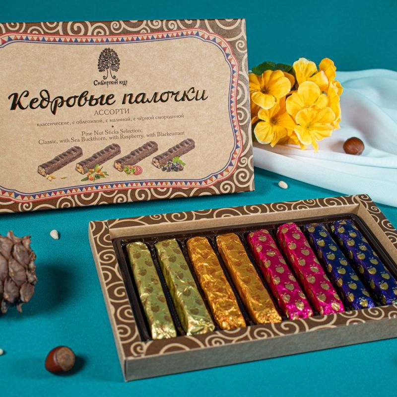 Кедровые палочки «Ассорти» — новинка от эко-фабрики «Сибирский кедр», которая объединила в себе палитру вкусов любимой конфеты. Кедровый орех в шоколадной глазури, дополненный яркими вкусами облепихи, малины и чёрной смородины подарят истинное наслаждение и пользу любителям кедровых палочек.
