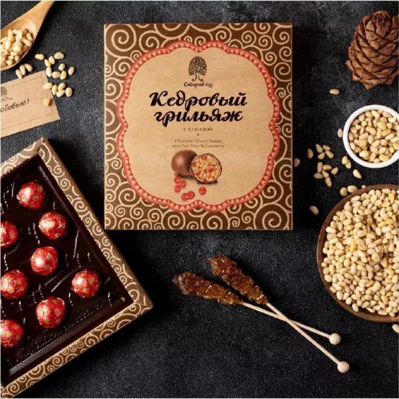 Кедровый грильяж — самые любимые нашими покупателями конфеты. Это наш флагман. Много лет не теряют популярности среди ценителей натуральных сладостей. Это отличный подарок из Сибири, угощение для себя любимого и близких, полезный десерт для самых требовательных сладкоежек.