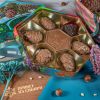 В центре набора ассорти находится плитка молочного шоколада с добавлением ядер кедрового ореха. Плитка исполнена в виде шестиугольника с 3Д панно на котором изображен бурый медведь и кедр.
