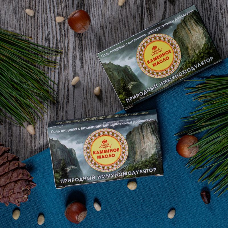 Каменное масло - удивительный продукт. Оно образовывается на стенах скал, бережно собирается и проходит тщательный контроль и очистку. Этот продукт настоящий кладезь минералов и природных иммуностимуляторов. Первыми пользу каменного масла заметили не учёные и друиды, а горные козлы, специально забиравшиеся на отвесные скалы, чтобы полакомиться каменным маслом. Помимо богатого минералами состава, масло обладает антибактериальным действием. Масло может приниматься, как внутрь при заболеваниях полости рта, горла и ЖКТ, так и наружно, оказывая ранозаживляющий и успокаивающий раздражение эффект.