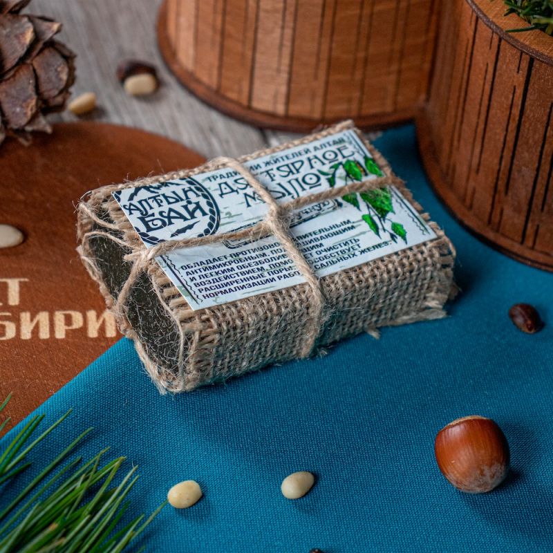 Мыло туалетное твёрдое «Дегтярное» – это исключительно натуральные ингредиенты, ручная работа и огромная польза для здоровья кожи. Уникальная технология производства позволяет сохранить все полезные вещества используемых компонентов, которые подарила природа Алтайского края. Берёзовый дёготь оказывает мощное антибактериальное и противовоспалительное действие, улучшает регенерацию тканей и общее состояние кожи.