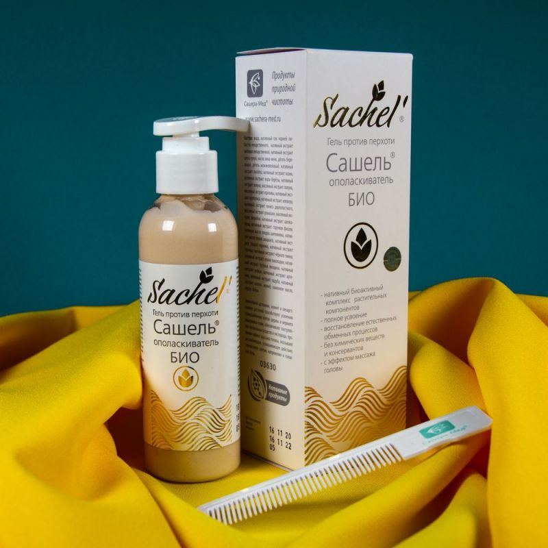 Сашель® ополаскиватель БИО – нативный натуральный гель на основе эковытяжек, сока травы и плодов лекарственных растений с добавлением нативных природных компонентов, оказывающий регулирующее действие на функции и состояние клеток кожи головы, внутренние слои кожи, волосяную сумку, сальные железы и стержень волоса при сухой, жирной и смешанной себорее, себорейном дерматите, микозах, кератозе, с эффектом массажа головы.