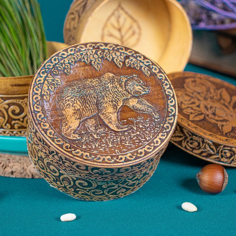Шкатулка круглая Медведь — Шкатулка круглая Медведь