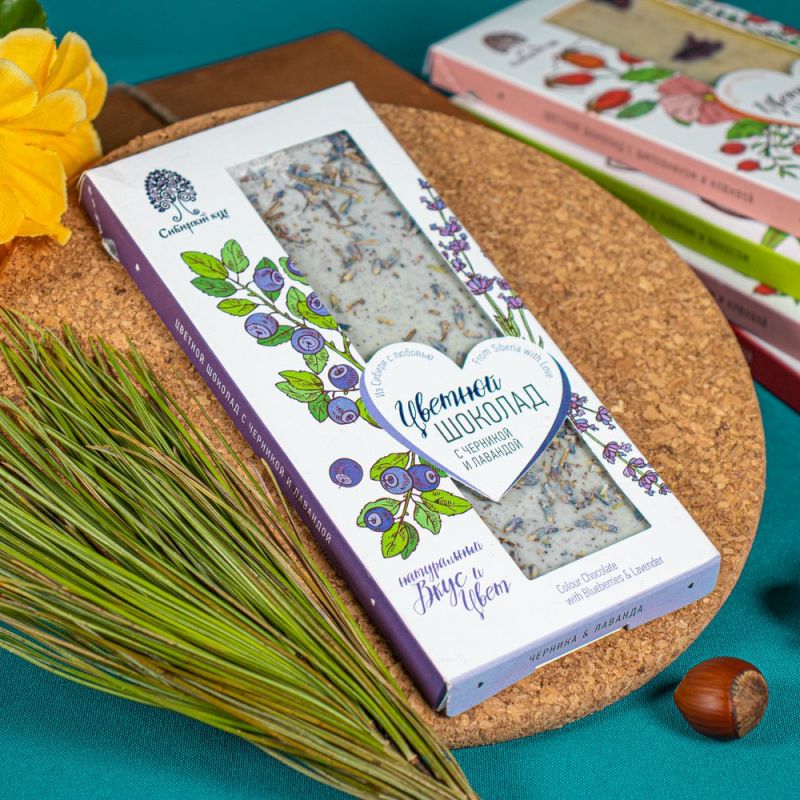 Шоколад цветной — С черникой и лавандой 100 гр