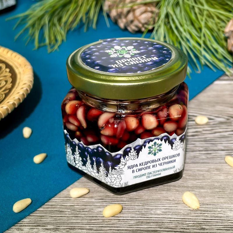 Ядро кедрового ореха в ягодном сиропе — Из черники 130 гр