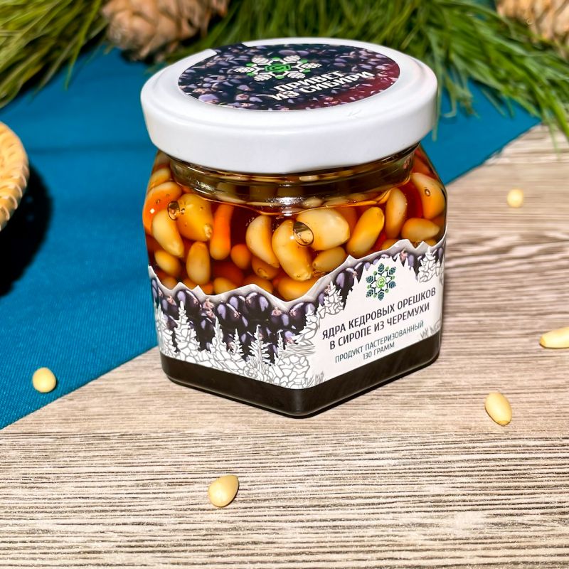 Ядро кедрового ореха в ягодном сиропе — Из черемухи 130 гр