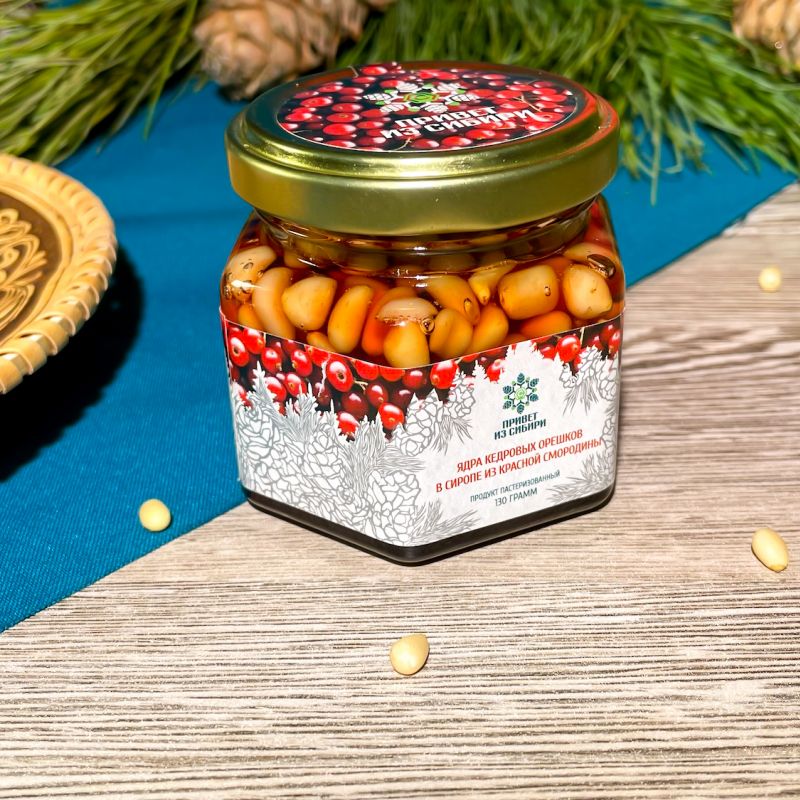 Ядро кедрового ореха в ягодном сиропе — Из красной смородины 130 гр