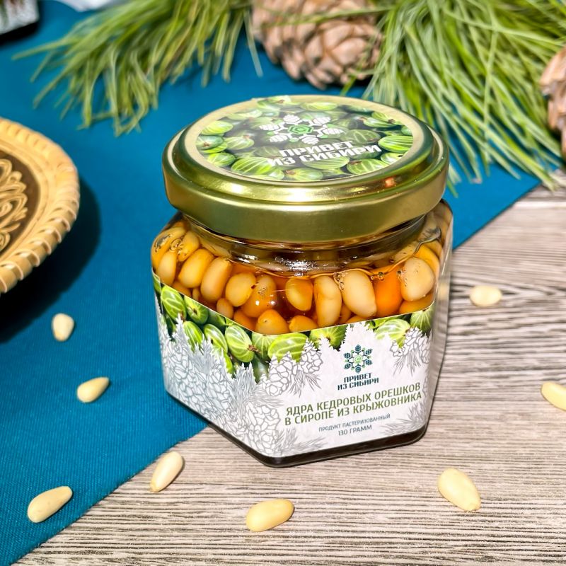 Ядро кедрового ореха в ягодном сиропе — Из крыжовника 130 гр