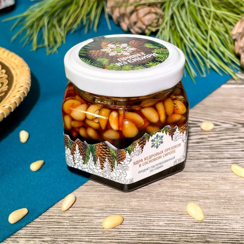 Ядро кедрового ореха в ягодном сиропе — В сосновом сиропе 130 гр