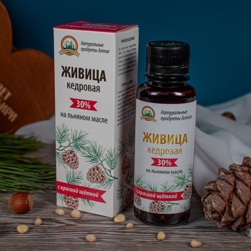 Живица кедровая на льняном масле — с КРАСНОЙ ЩЕТКОЙ 100 мл