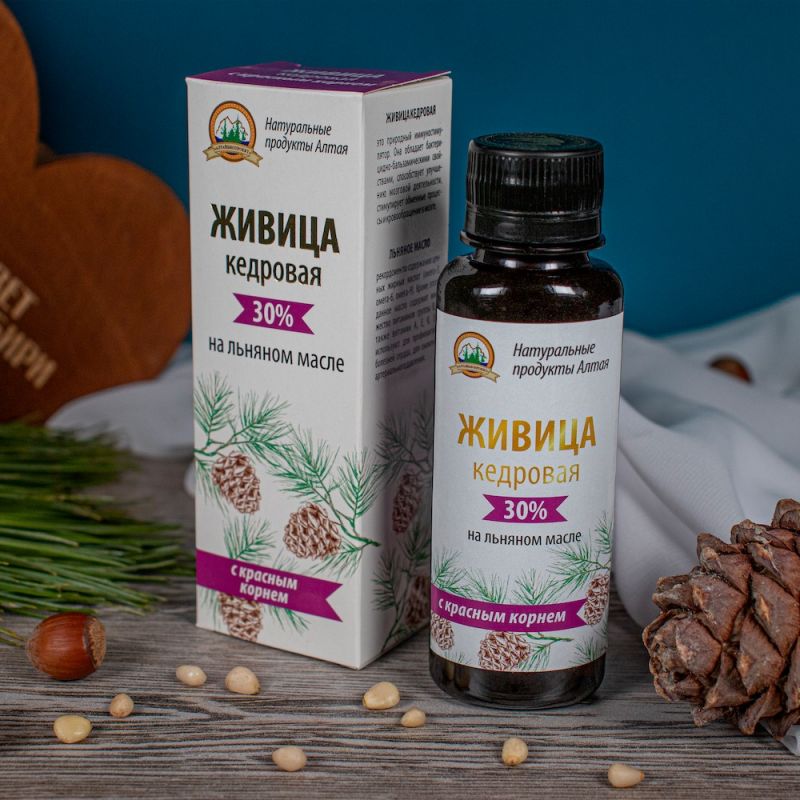Живица кедровая на льняном масле — с КРАСНЫМ КОРНЕМ 100 мл